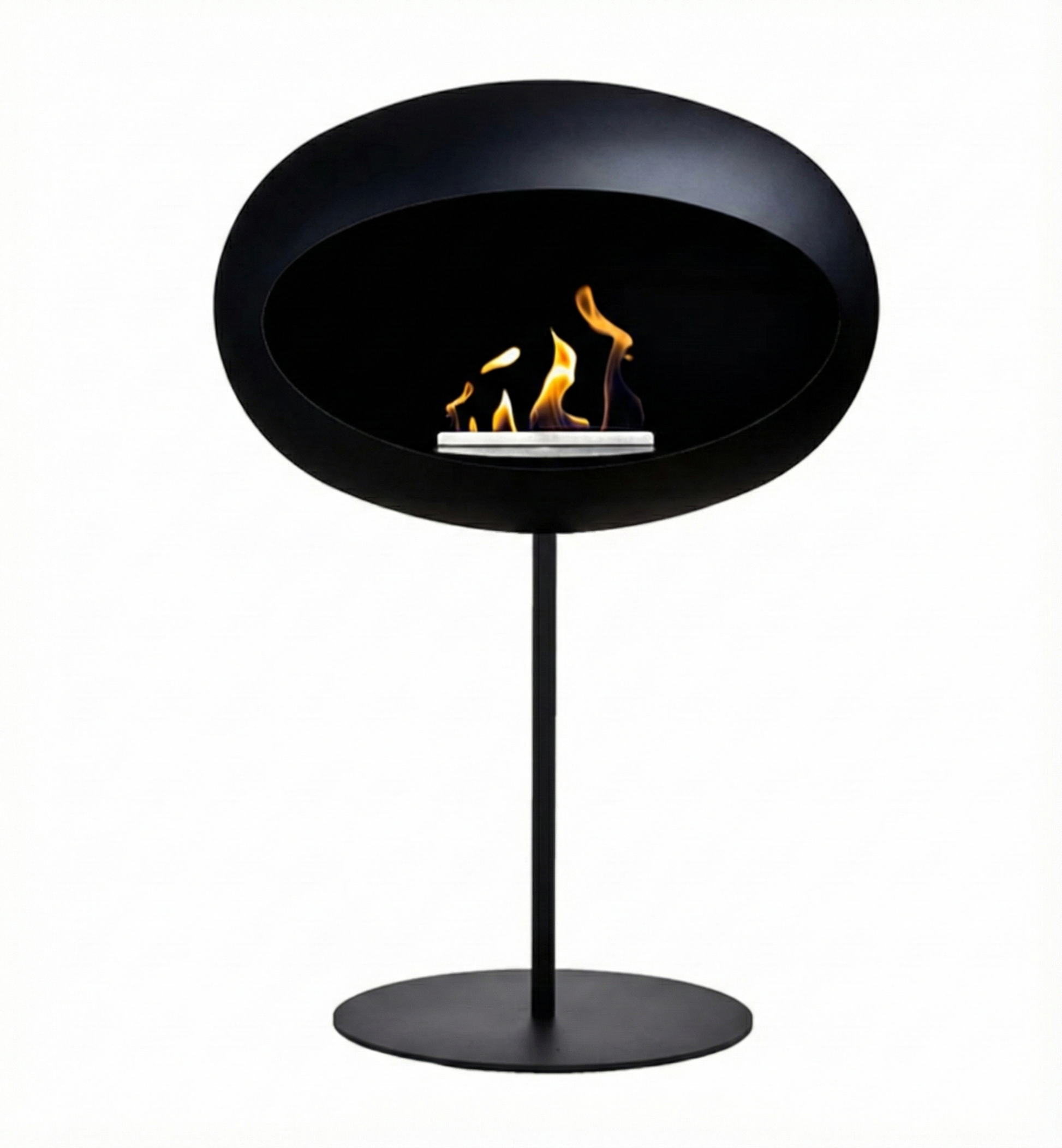 Denne fritstående bioethanol pejs kombinerer moderne design med ægte flammer og nem installation. Pejsen er røgfri og kræver hverken skorsten eller aftræk, hvilket gør den ideel til både lejligheder og huse.